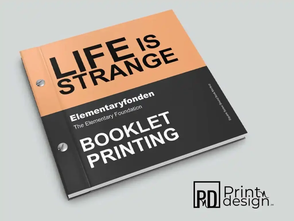 Screw Binding Booklet Printing in Dubai by Print N Design, offering strong metal screw binding for a modern, durable finish—ideal for catalogs, menus, and presentation booklets.