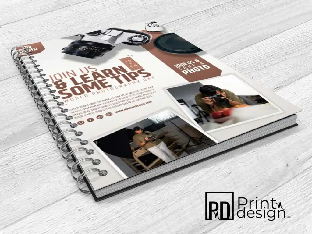 Ring Binding Booklet Printing in Dubai by Print N Design, offering flexible page turning and durable binding, ideal for manuals, reports, and business presentations.